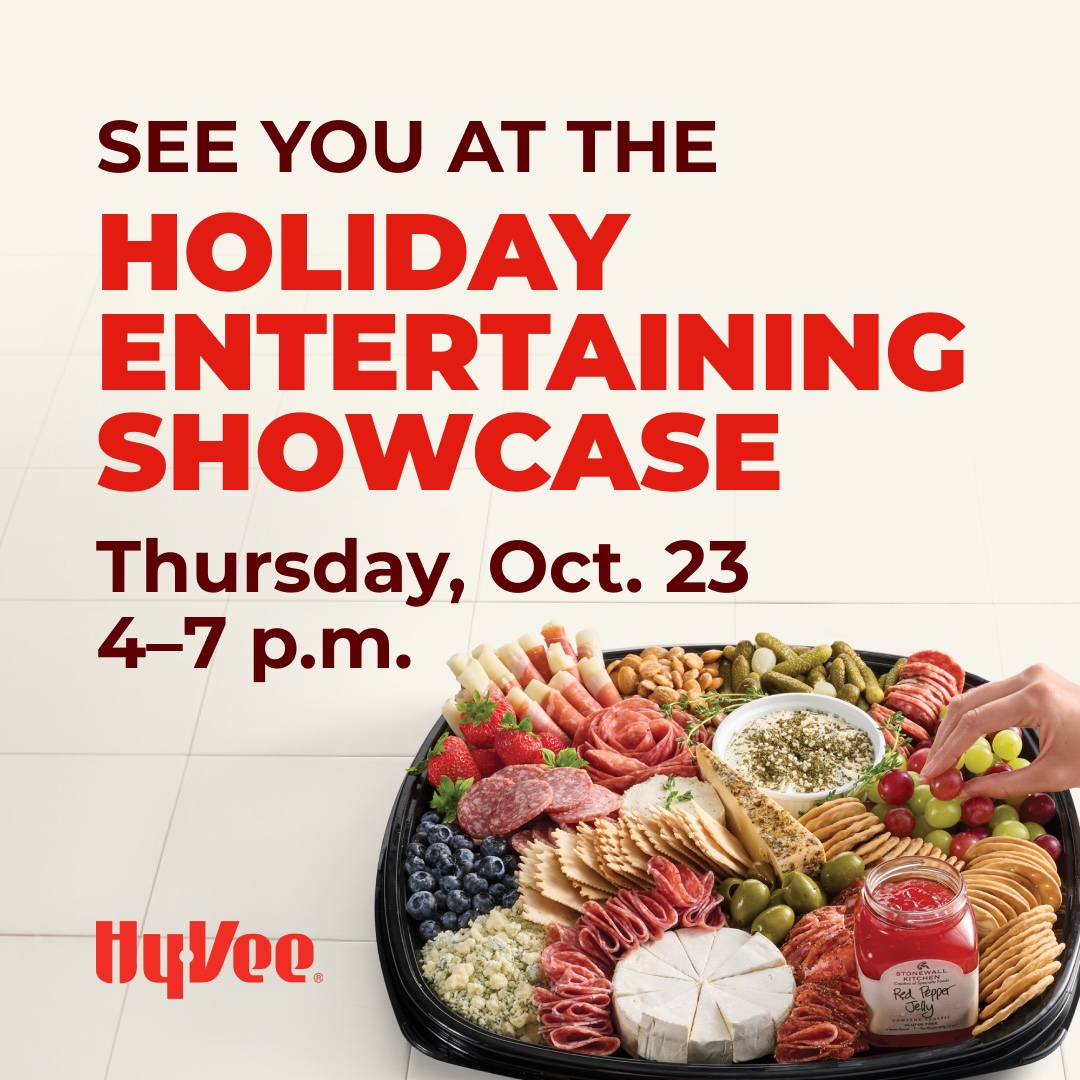 We've got everything you need to celebrate the holidays with ease! Stop by the Holiday Entertaining Showcase at your local Hy-Vee on Thursday, Oct. 23, from 4-7 p.m., to get inspired with holiday meal ideas, explore catering solutions, sample products, and place your order to make holiday hosting even easier.